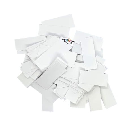 forma: rettangolari Colore: Bianco Dimensioni: 2 x 5 cm. quantità: 5 kg. uso per cannoni spara coriandoli a CO2 o altri sistemi